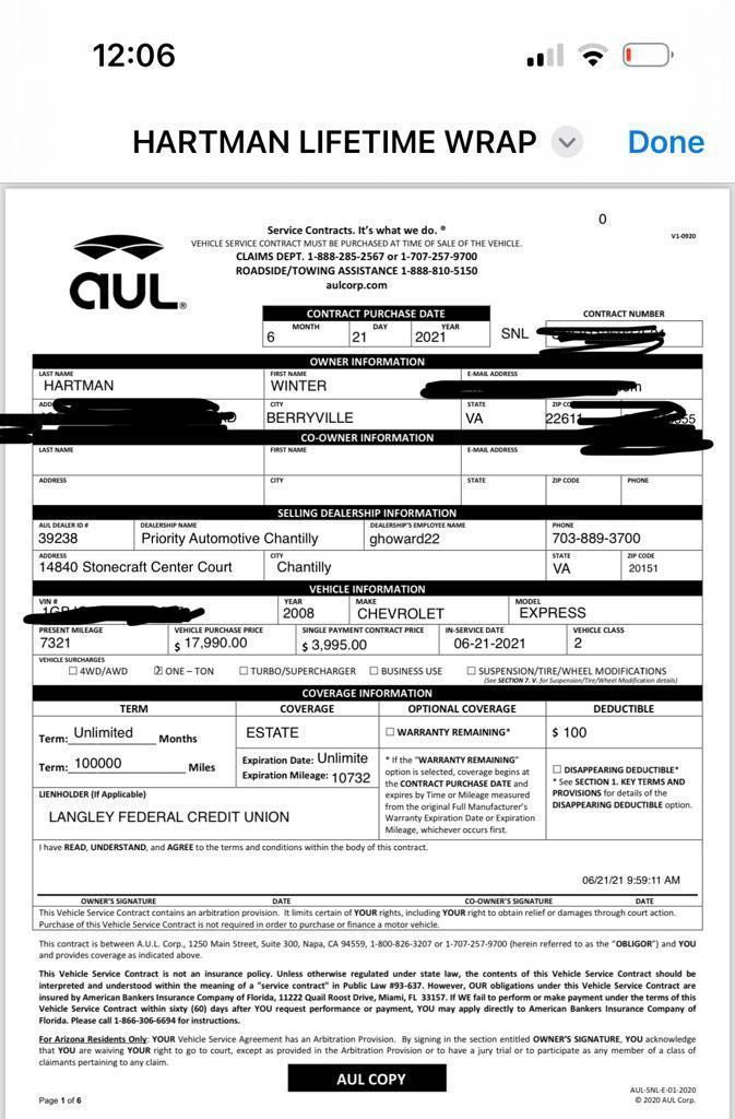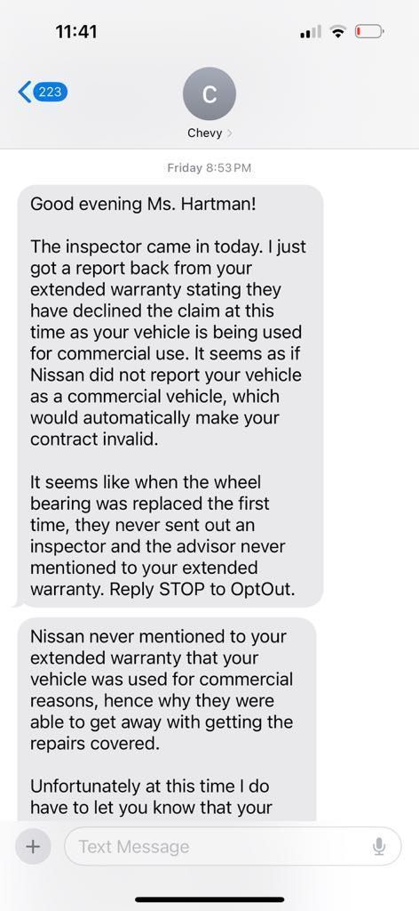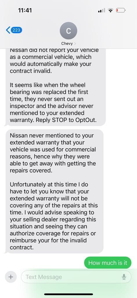 Priority Nissan of Chantilly sold me a company vehicle used for our business that has had nothing but problems. We purchased a service contract and full warranty at $4000 and now that after putting 10,000 miles on the vehicle it needs $8000 work done the warranty claim has been denied based on the fact that it is a commercial use vehicle as it is a school bus, the $4000 warranty Nissan Solis is no void and has no validity behind it. Nissans management has refused to speak with me and could care less about my problem. This is put my business out of a vehicle and short 14 seats which costs our program gravely at about $14,000 a month loss this whole situation may even be the result of our business closing down. There have been multiple issues ever since purchasing the vehicle. We have hardly been able to use the vehicle as it is current always being serviced. Nissan took our money an sold us a lemon. At teh same time I bought another vehicle a nissan titan xd from browns Nissan that also blew up shortly after purchase. I was promised $4k fir this truck plus a new replacement and never receive either. I strongly feel being a women plays a large role in being taken advantage of. After looking at the dealership reviews I found that 54% are 1 star reviews. How they continue to rip people off an stay in business doing so is a shock. If you woul dlike to send me information on your case I would be happy to spearhead a class action lawsuit. Thank you for taking the time to listen to my story. An if you have been a victim of Nissan like me I unerstand your pain. Lets make a change.